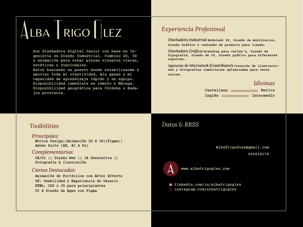 En estos años me he formando en otras ramas más orientadas al Diseño Visual, al diseño UX/UI y al Diseño Web. Porque lo que de verdad me importa es la creatividad, sea en el campo que sea, espero poder transmitirte las ganas que tengo de ello. Soy muy capaz de autogestionarme, soy comprometida y estoy totalmente preparada para trabajar en remoto.
